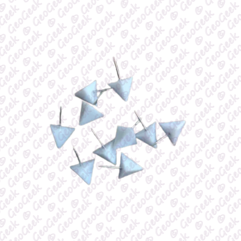 Een zakje met 10 driehoekige punaises voor het maken van een nachtcache trail.