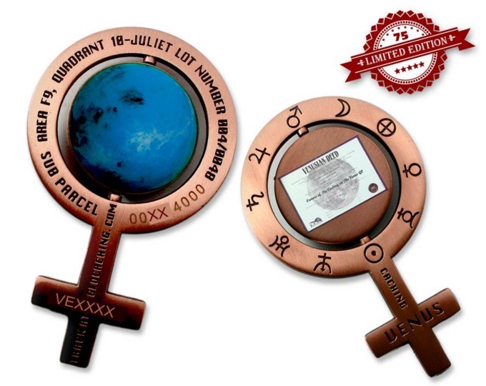 Elke eigenaar van geocoins wordt automatisch ook de eigenaar van een stukje Venus ca. 1 sqm plot in de volgende gebieden: F-9, Kwadrant 10-Juliet, veel nummer 004/0048.